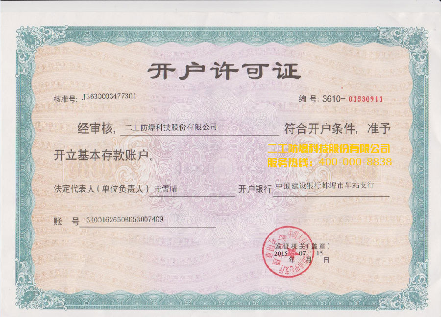 • 開戶許可證